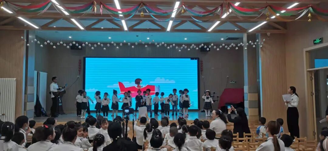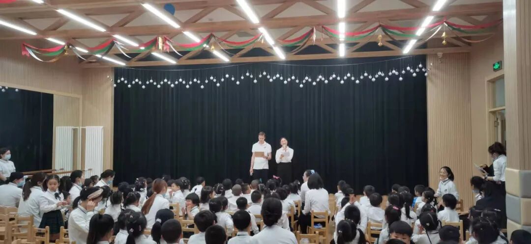 非洲手鼓的鼓点,电吉他的乐律,架子鼓的燃场,伴随着全体师生合唱的《Baby shark》,我们的歌会也接近了尾声。老师们的精心排练,孩子们的齐心欢唱、大胆表现及团结合作,为我们呈现了一场传统文化与异国风情的别致融合的童歌会。