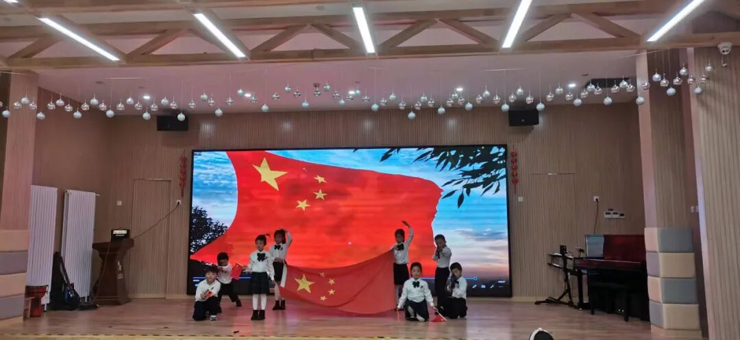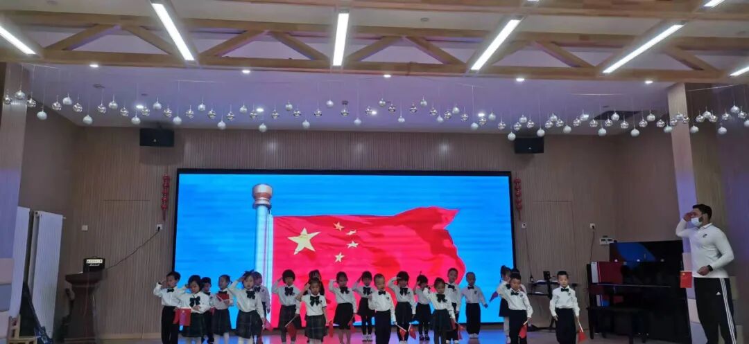 "One, two, three, four... " accompanied by the slogan, our K3 class of small flag-bearers entered the stage. Although our flag-bearers are not yet able to express their love for the motherland in words, the standard marching steps, the neat ceremony, the small expression of careful flag protection is enough to express our love for the motherland.