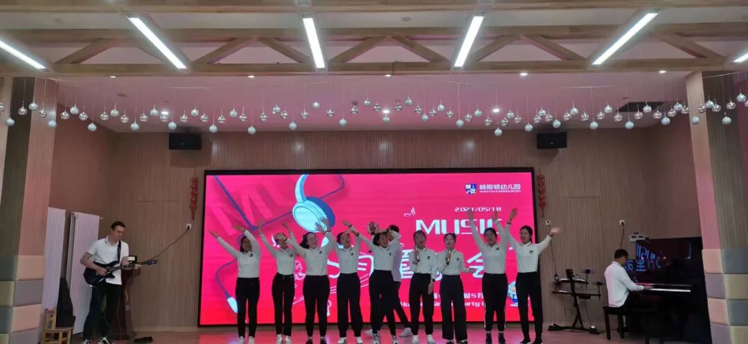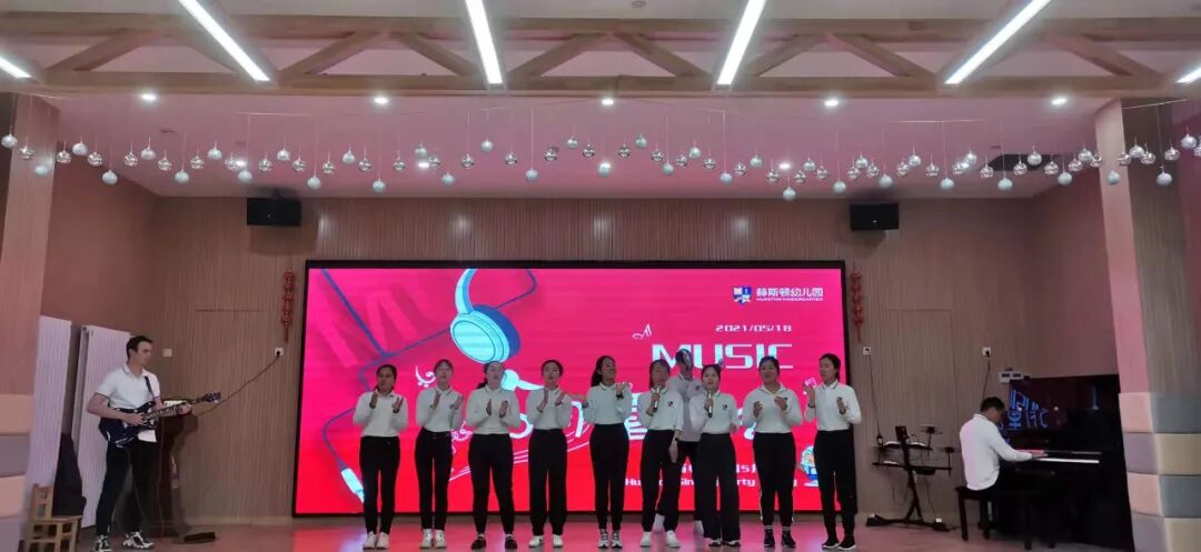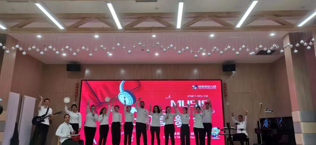 The Drum beat of the African tambourine, the rhythm of the Electric Guitar, the burning field of the drum set, and our song is coming to an end with the chorus of "Baby Shark" by all the teachers and students. The teachers'careful rehearsal, the children's singing together, the bold performance and the unity of cooperation, for us to present a traditional culture and exotic unique blend of children's songs.
